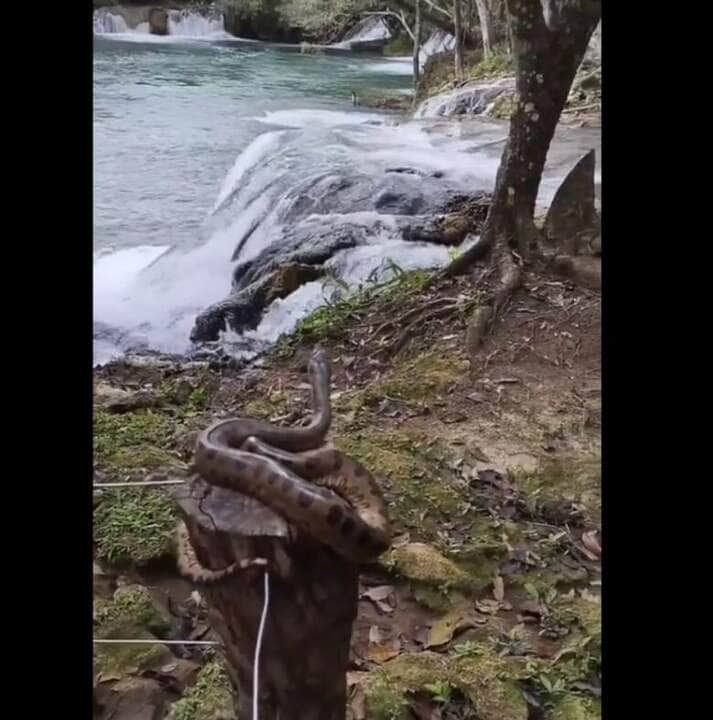 Super de boa, assim, um filhote de cobra sucuri foi flagrado curtindo a paisagem de uma cachoeira. Assista abaixo.