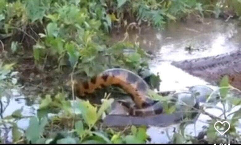 Mistério nas águas: vídeo mostra encontro inusitado de cobras sucuris em alagado