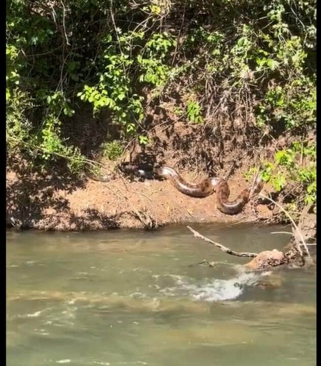 Pescadores tiveram um encontro magnífico com uma enorme cobra sucuri, que estava as margens do rio tomando banho de sol. Confira no vídeo abaixo.