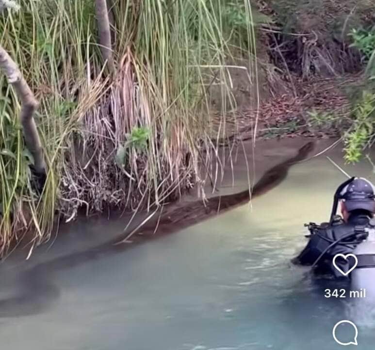 O vídeo mostra a cobra deslizando pelas águas cristalinas do rio com sua enorme massa muscular. A sucuri-verde é uma das maiores cobras do mundo, podendo ultrapassar os sete metros de comprimento e pesar mais de 200 quilos.