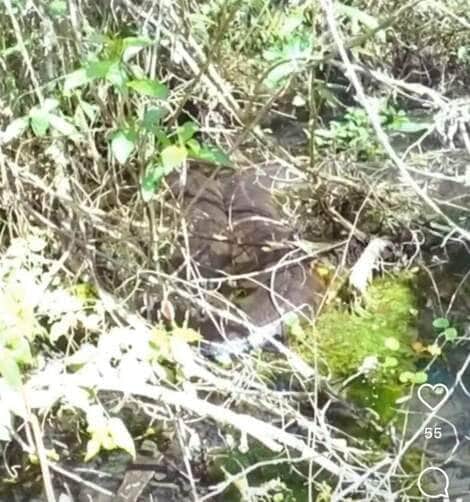 A cobra gigante, perfeitamente camuflada entre a vegetação e a água do rio, se refrescava e observava o ambiente com atenção, proporcionando a Teixeira um momento de rara beleza e admiração.
