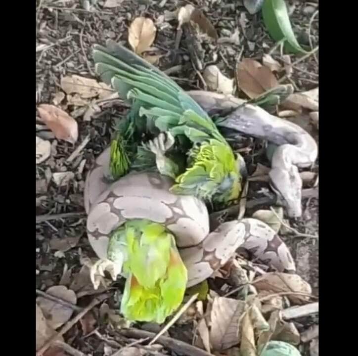 No vídeo o homem narra que encontrou uma uma cobra ‘caninana’ que caiu de uma árvore momento em que predava um papagaio. Porém, o que na verdade ele encontrou foi uma belíssima cobra jiboia.