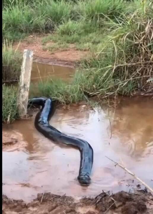 A sucuri era tão grande que praticamente ocupava todo o leito do rio e foi avistada por alguns motoristas que passavam por uma estrada.