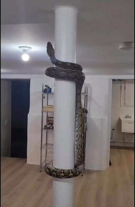 Um vídeo que circula nas redes sociais mostra uma enorme cobra píton escalando o pilar de uma casa. O vídeo mostra a agilidade que essa cobra tem para escalar qualquer coisa.
