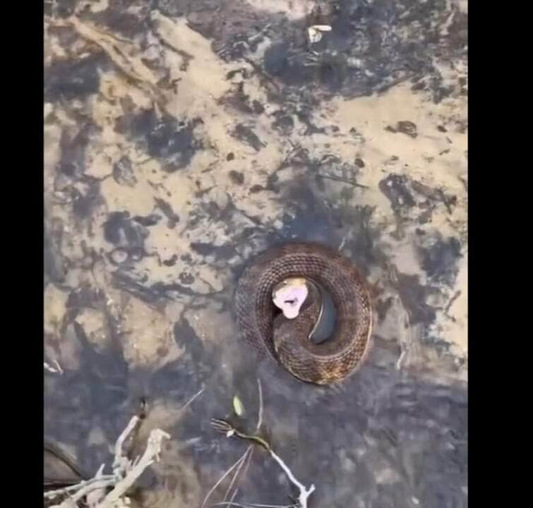Um incrível vídeo mostrou uma cobra jararaca de boa, flutuando em um pequeno rio. Assista abaixo.