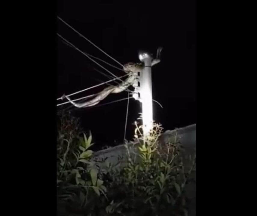 Nas imagens, a jiboia aparece enrolada nos fios de energia, com vários metros de comprimento. A cobra parece estar à procura de algum animal para poder se alimentar.