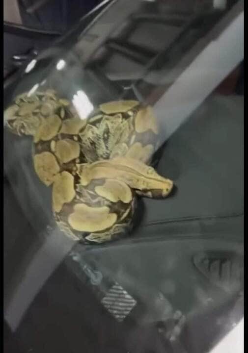 Jiboia foi avistada no painel de um carro no estacionamento de um shopping, deixou uma mulher abismada e admirada ao mesmo tempo.
