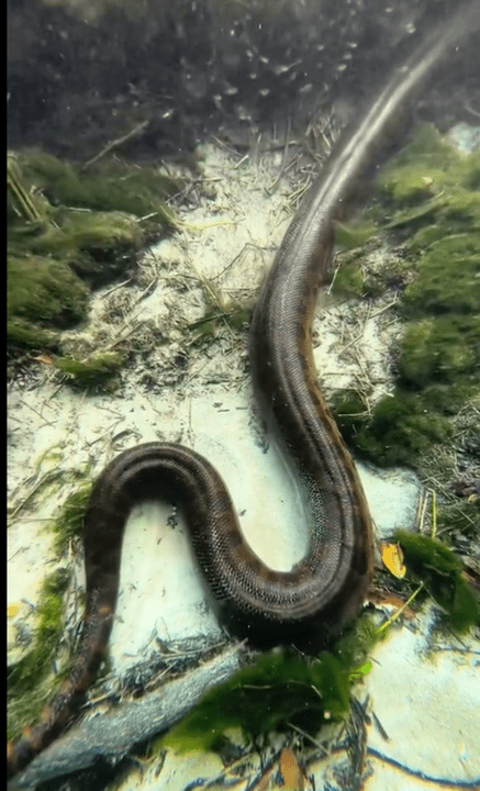 Um vídeo que circula nas redes sociais mostra a sucuri no fundo do Rio Formoso, no município de Bonito (MS). As águas do rio são tão cristalinas que foi possível observar com nitidez a sucuri.