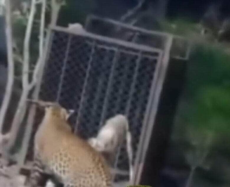 Leopardo vs Cachorro: Felino selvagem tenta predar animal em cercado