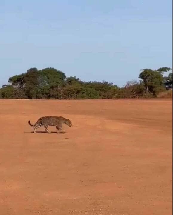 Vídeo que circula nas redes sociais mostra uma onça-pintada (Panthera onça) circulando no pátio da sede de uma fazenda. Confira no vídeo abaixo.