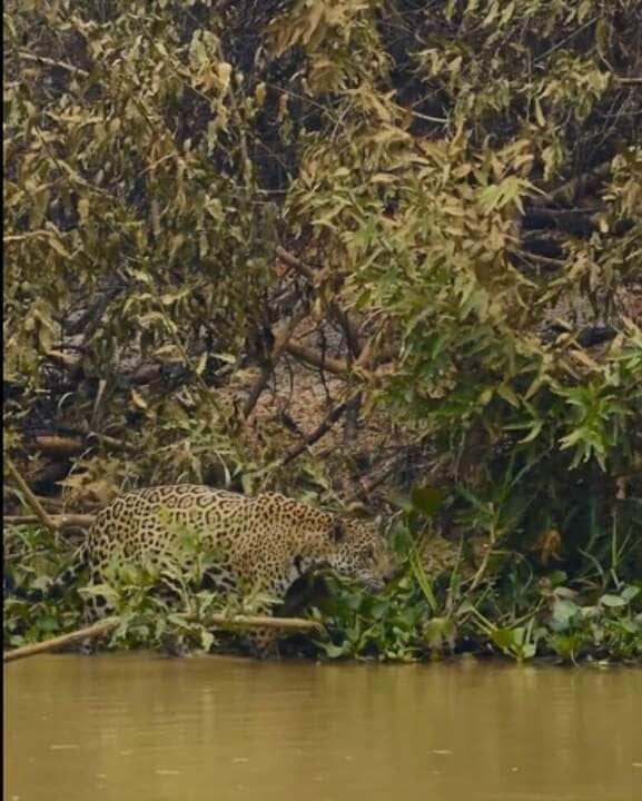 “Enquanto ajudando as equipes na missão de proteção do Pantanal diante dos incêndios florestais, vimos muitas onças e decidi mostrar esse vídeo aqui da rainha da floresta”, descreveu em sua publicação, o guia turístico Ailton Lara.