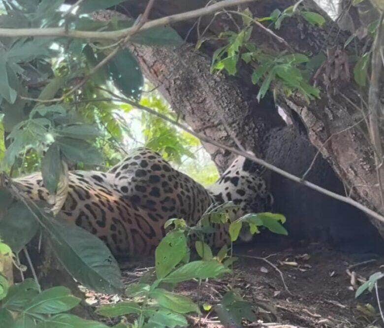 Cena rara: fotógrafo registra onça-pintada descansando sob a sombra de uma árvore no Mato Grosso
