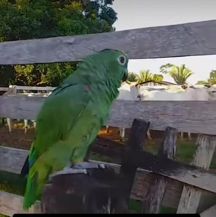 A ave, empoleirada em um mourão da cerca do curral, imita os peões e toca os bois com maestria. As imagens, engraçadas e encantadoras, revelam a inteligência e a capacidade de aprendizado dos papagaios.