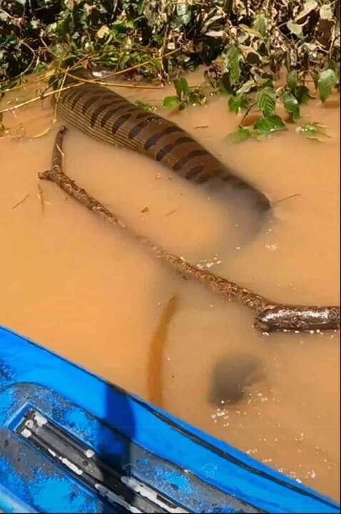 Ao se aproximar do local onde estava enroscado o anzol, o homem levou o maior susto ao perceber que estava frende uma enorme sucuri.
