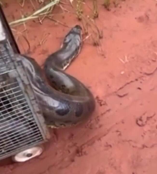 A operação, realizada por brigadistas, foi registrada em vídeo e mostra a cobra sendo transportada em uma jaula especial. Devido ao seu tamanho, a sucuri mal cabia no compartimento, evidenciando a grandiosidade da espécie.