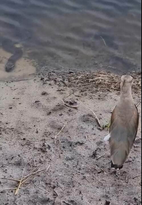 Não era para menos, a sucuri não perdoou e também não perdeu a oportunidade de fazer um lanchinho. A anaconda predou o pássaro em uma ação rápida.