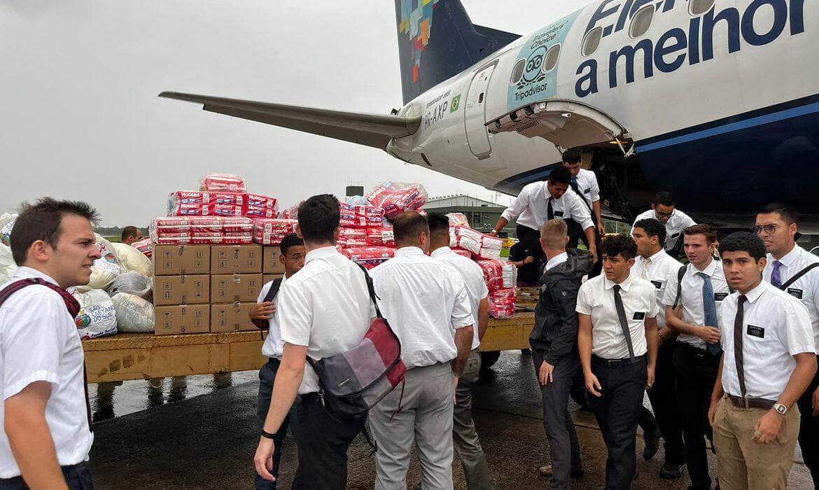 A primeira aeronave, da Azul Linhas Aéreas, pousou em Canoas às 15h10 desta quarta-feira (8), transportando 1,5 tonelada de mantimentos que a empresa arrecadou em mais de 500 postos de coleta, incluindo água, cobertores, absorventes, fralda e soro fisiológico. Em nota, a companhia afirma ter mais 251 toneladas de donativos prontos para serem enviados ao estado nos próximos dias.