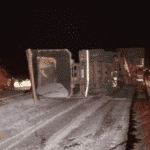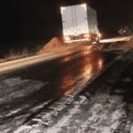 Três carretas se envolveram num acidente na BR-163 em Nova Mutum, em decorrência um bloqueio de terra na pista, por parte de manifestantes que participam de protestos na rodovia.