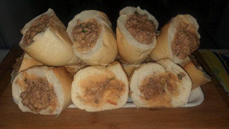 - Recheie os pães com a carne moída e coloque as tampas por cima.