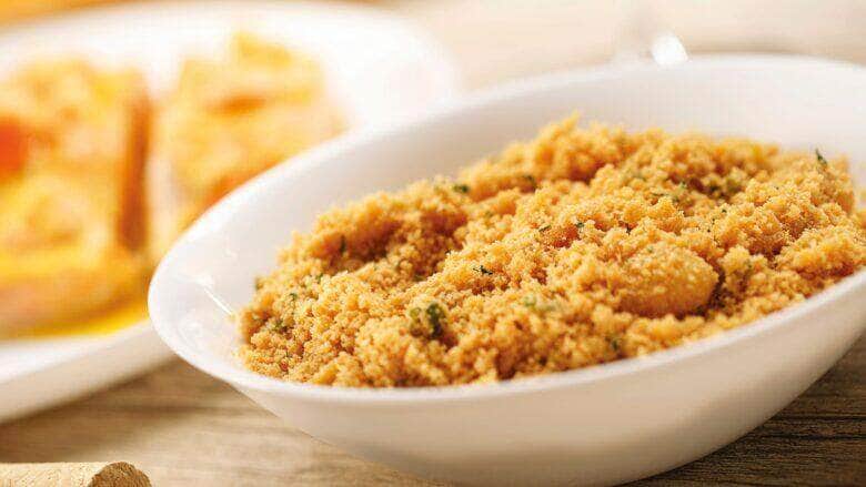 - Se desejar uma farofa mais úmida, adicione um pouco de leite ou caldo de legumes durante o preparo.