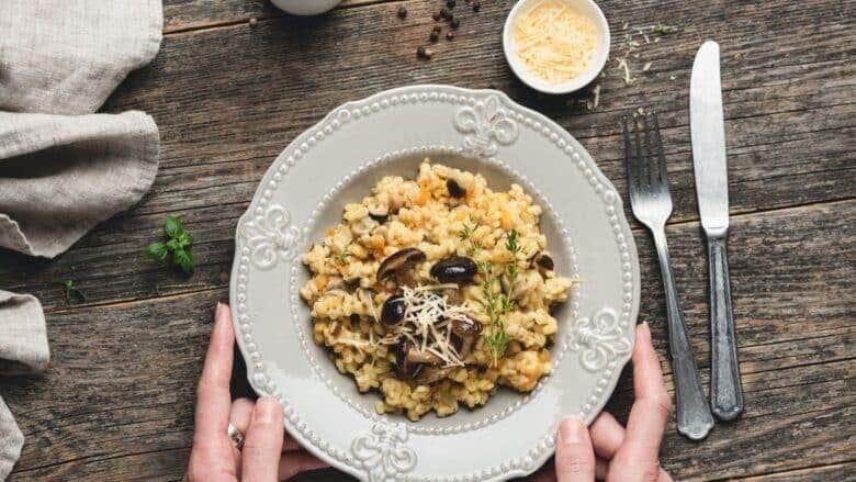 A origem do risoto é incerta, mas acredita-se que tenha surgido na região da Lombardia, ao norte da Itália, no século XI. A palavra “risotto” vem do italiano “riso”, que significa “arroz”. O risoto tradicional é feito com arroz arbóreo, que é um tipo de arroz de grãos longos e firmes. O arroz é cozido em caldo, geralmente de carne ou frango, e mexido constantemente para evitar que grude.