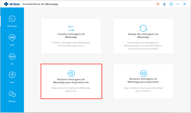 - Escolha Restaurar mensagens do WhatsApp para dispositivos iOS.