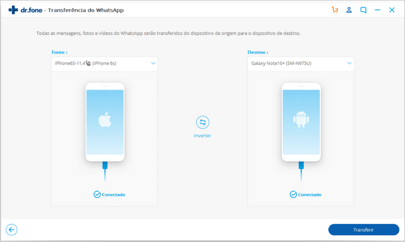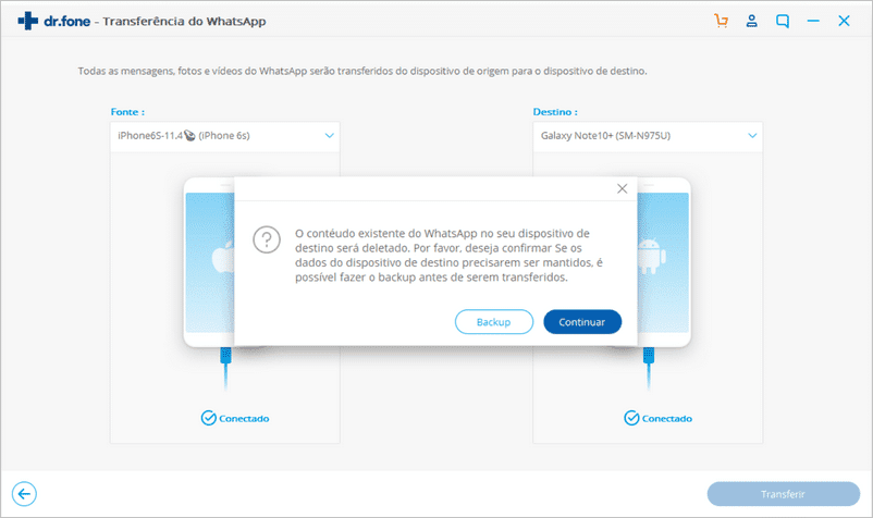 - Em seguida, aperte em Transferir para iniciar a transferência de mensagem do WhatsApp.