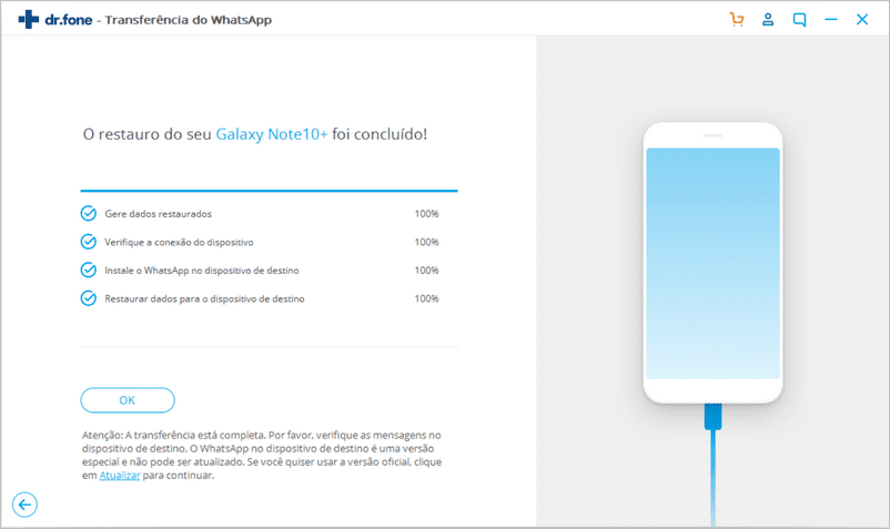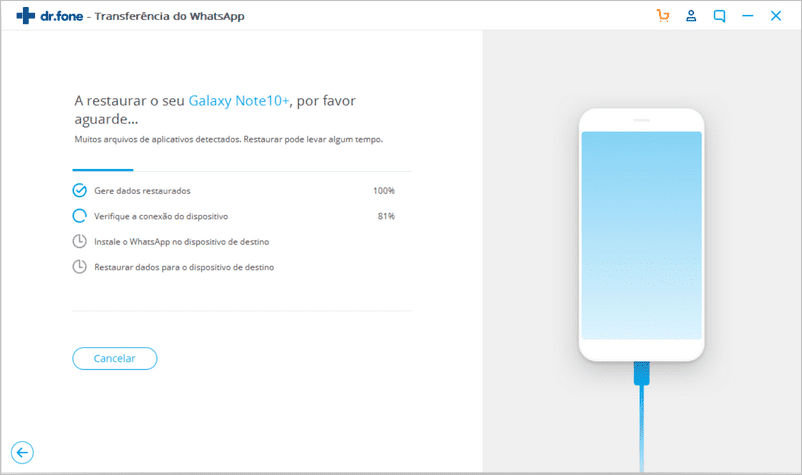 Através do Dr. Fone é possível fazer o backup, restauração e transferência dos dados do WhatsApp para aparelhos iOS e Android.