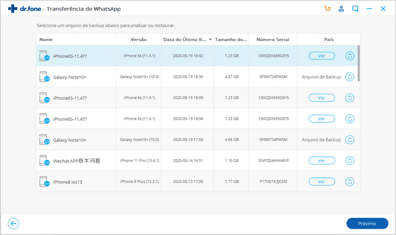 - Não se esqueça de manter o seu iPhone ou iPad devidamente conectado ao PC. Logo, você verá todos os arquivos de backup listados.
